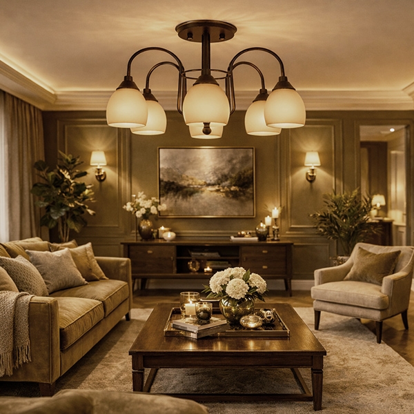 Deckenleuchte mit sechs Armen – zeitlose Eleganz in warmem Licht