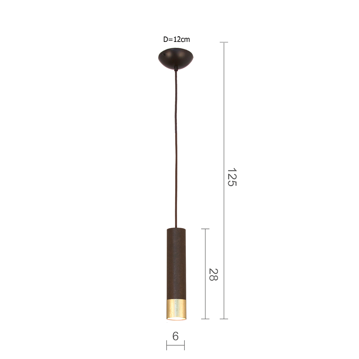 Produktinformationen "Menzel SOLO Pendel Pipe6, GU10 schwarz braun mit Blattgold Rand, Innen gold lackiert,Textilkabel"