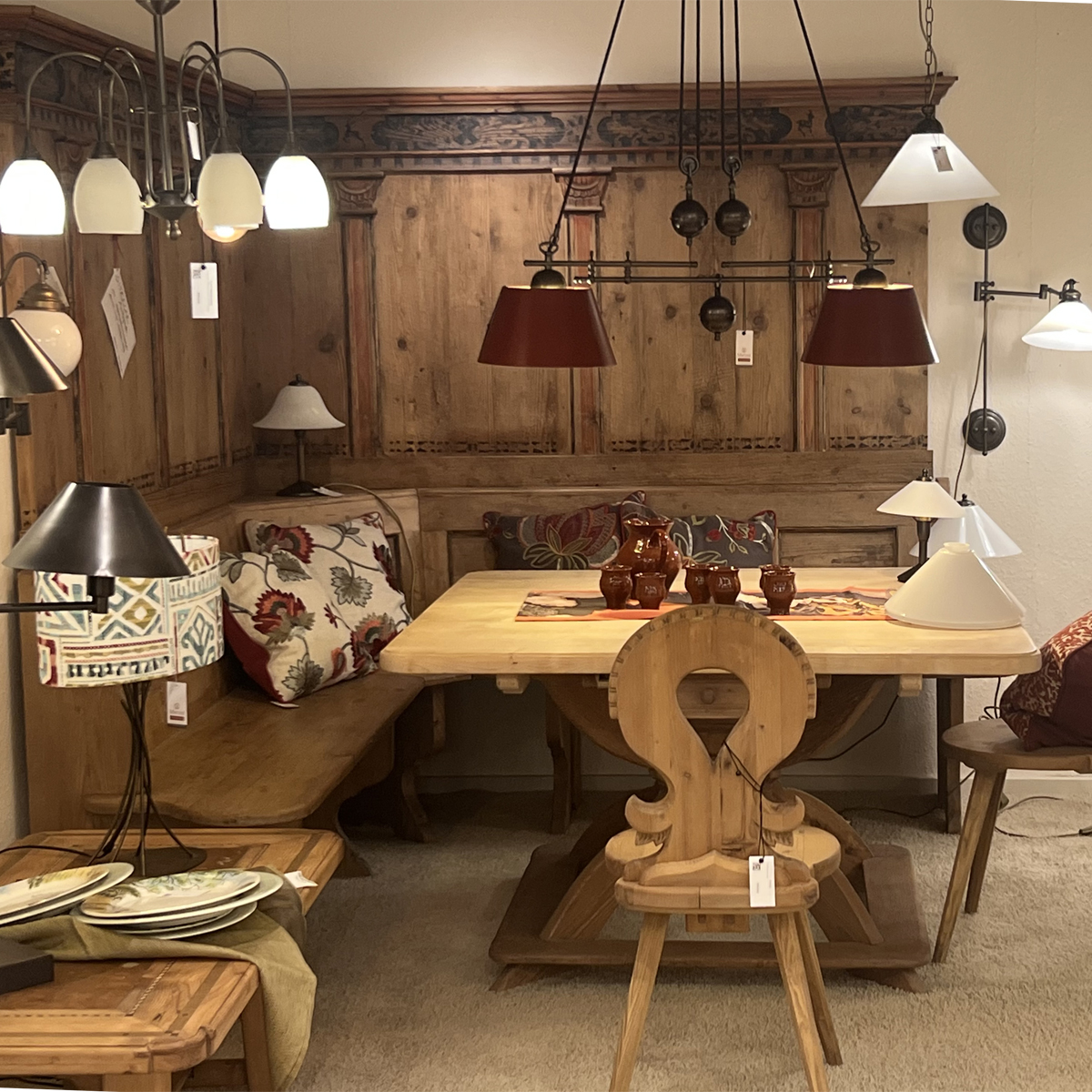 In unserem Showroom in Ruhpolding finden Sie neben hochwertigen Möbeln, Wohntextilien und Leuchten auch charmante Deko Artikel und Accessoires im Landhaustil. Wie Sie ganz einfach mit wenigen Handgriffen Ihr Zuhause zu einer Wohlfühloase machen oder Ihre gewerblichen Räume edler wirken lassen. All das verrät Ihnen unser Fachpersonal in unserem Showroom in Ruhpolding gerne und berät Sie zu jedem Ihrer Vorhaben Individuell.