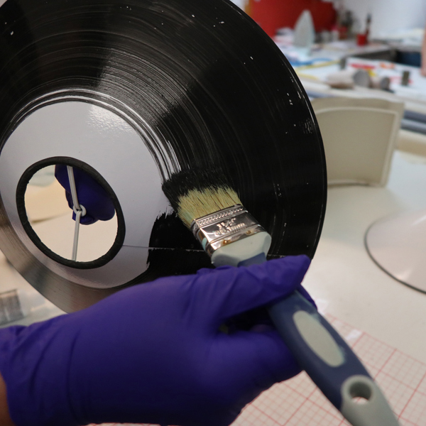 Unsere Strichlack-Lampenschirme werden – wie der Name bereits verrät – in sorgfältiger Handarbeit mit Pinsel und Farbe gefertigt. Während der Schirm langsam gedreht wird, trägt der Leuchtenmacher die Farbe Strich für Strich auf. So entsteht die charakteristische, lebendige Oberfläche, die jeden Schirm zu einem Unikat macht.