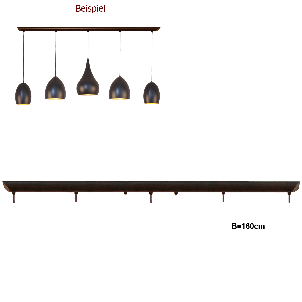 Unser langer Baldachin schmal länglich 160cm in Eisenoptik bringt Funktionalität in Ihr Zuhause. Mit der Möglichkeit verschiedene Bohrungen zu bestellen bietet er eine einfache Montage für Ihre Hängeleuchten und sorgt für eine stilvolle Präsentation. Die robuste Eisenkonstruktion garantiert Langlebigkeit und Stabilität.