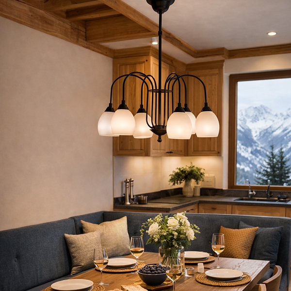 Dank ihrer ausgewogenen Proportionen eignet sich die Leuchte ideal für Wohnzimmer, Essbereiche oder repräsentative Dielen. Die sechs Lichtquellen sorgen für ausreichend Helligkeit, ohne dominant zu wirken. Besonders in Kombination mit warmweißen Leuchtmitteln entfaltet sie ihre wohnliche, einladende Wirkung.