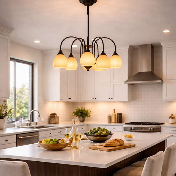 Krone mit sechs Armen – zeitlose Eleganz in warmem Licht