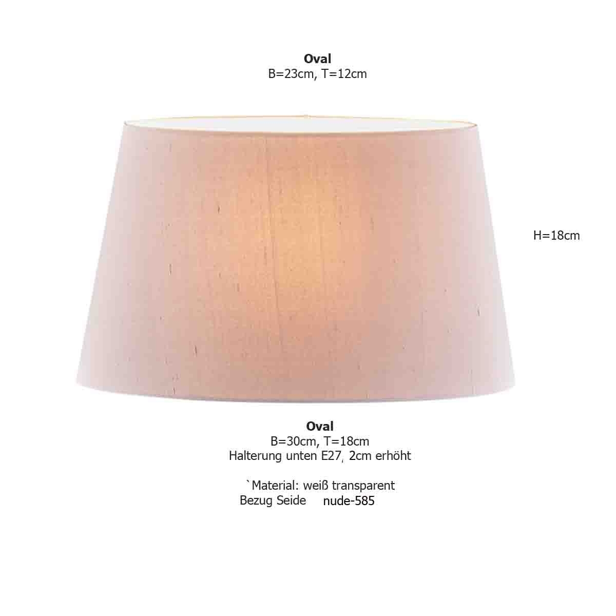 Produktinformationen "Lampenschirm oval konisch,E27, B=30cm, Seide Halterung unten"