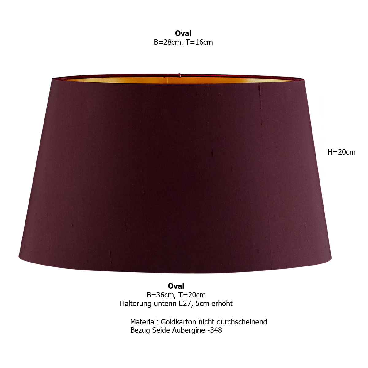 Der ovale Lampenschirm Living aus hochwertiger Naturseide verleiht Ihrer Tischleuchte eine stilvolle Eleganz. Mit seiner konischen Form und der Standardhalterung für E27 Fassungen bietet dieser Lampenschirm eine perfekte Verbindung aus Design und Funktionalität. Erleben Sie, wie sich die stilvolle Auberginenfarbe harmonisch in Ihre Wohnräume einfügt.