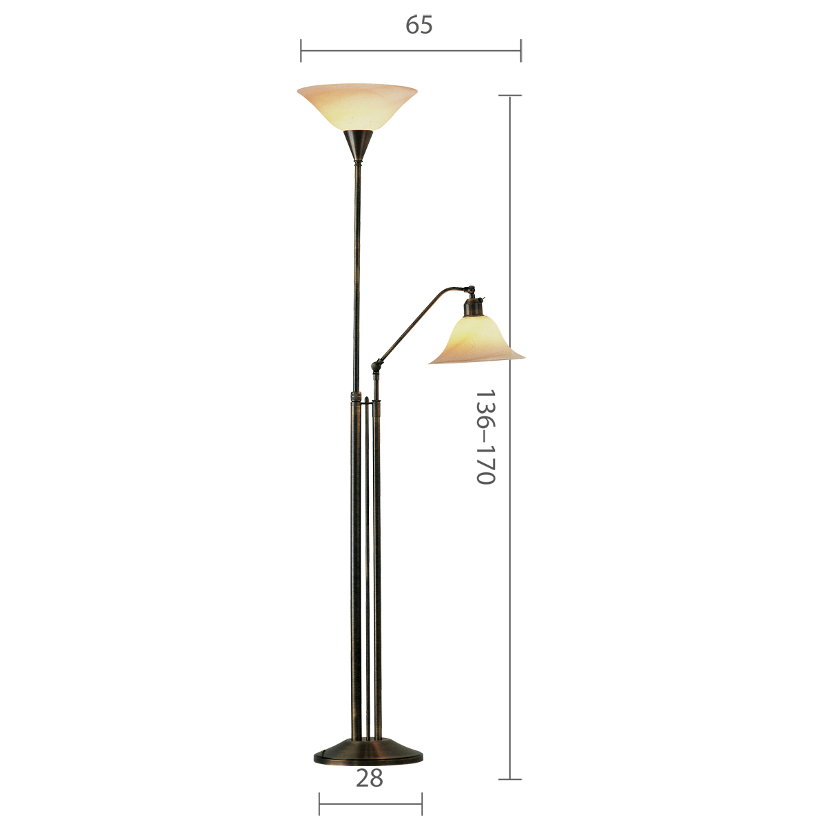 Produktinformationen "Menzel Anno 1900 Standfluter mit Taster, E27 Rauchglas, Messing brüniert, höheneinstellbar"