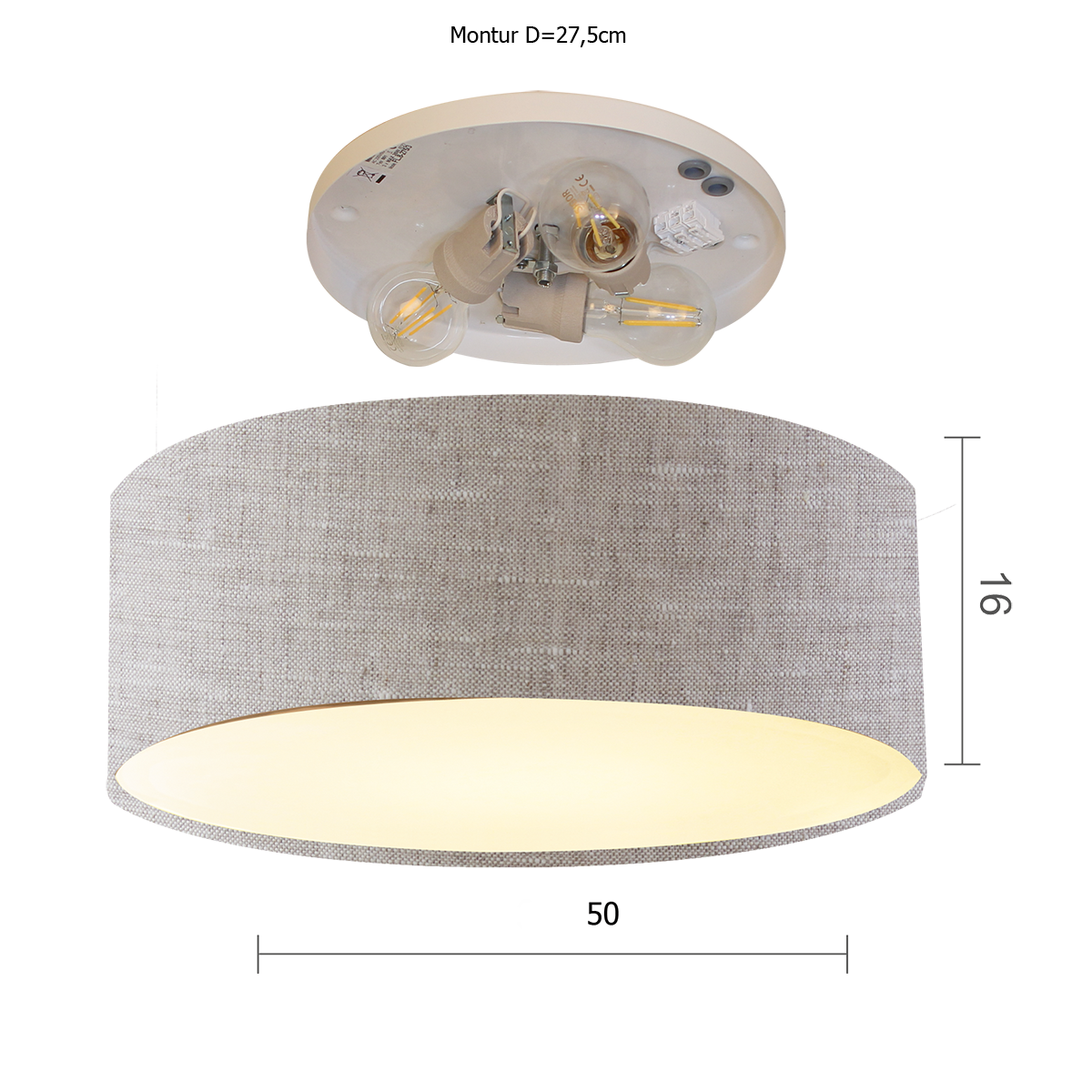 Der Schirm der Deckenleuchte Flair besteht aus edlem Leinen, einem Material, das für seine Textur und Haltbarkeit bekannt ist. Die Montur bleibt unsichtbar und sorgt für eine klare Optik. Der Diffusor verhindert Blendungen und sorgt für eine gleichmäßige Lichtverteilung. Diese Kombination macht die Lampe zu einem stilvollen Element in jedem Raum.
