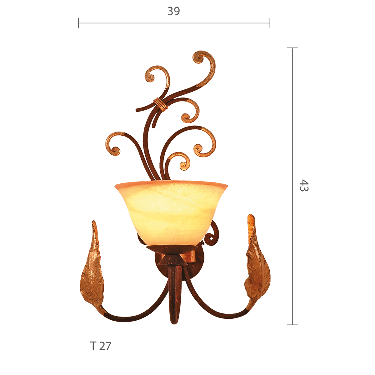 Produktinformationen "Menzel Florence Wandleuchte E14, Glas nach Wahl, Schmiedeeisen braun schwarz mit Blattgold Verzierung"
