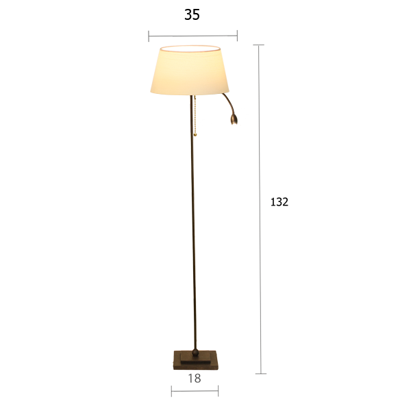 Diese Standleuchte beeindruckt mit einer robusten, quadratischen Basis aus Eisen, die für Stabilität sorgt und gleichzeitig elegante Akzente setzt. Die braun-schwarz getupfte Oberfläche verleiht der Lampe eine zeitlose Ästhetik, während die Zierteile am Sockel ein zusätzliches optisches Highlight bieten. Der Lampenschirm aus hochwertigem Chintz ist nicht nur ein stilvolles Element, sondern auch eine funktionale Wahl, die das Licht angenehm verteilt.