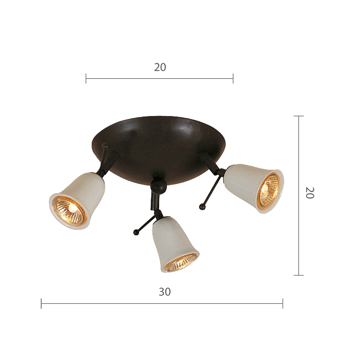 Dank der verstellbaren Gelenke der Keramikspots bietet diese Leuchte flexible Beleuchtungsoptionen. Ideal für Wohnzimmer, Küchen oder Esszimmer, sie passt sich Ihren Beleuchtungsbedürfnissen perfekt an. Die Leuchte ist für GU10-Leuchtmittel geeignet, die separat erhältlich sind.