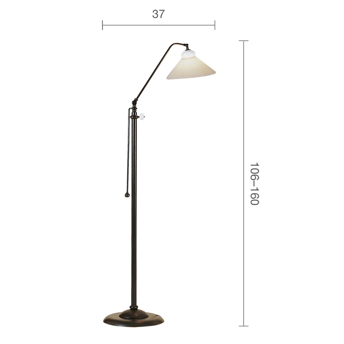 Diese exquisite Standleuchte kombiniert braun-schwarz getupftes Eisen mit glänzenden weißen Keramikzierteilen. Der konische Opalglas-Lampenschirm aus dreischichtigem Glas sorgt für ein angenehmes Licht und unterstreicht das elegante Design. Mit einem Durchmesser von 25 cm fügt sich die Leuchte harmonisch in jeden Raum ein.