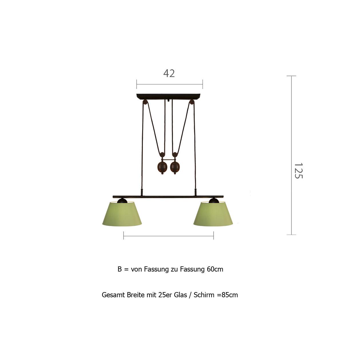 Die Pusta Zug Pendelleuchte ist die perfekte Ergänzung für jeden anspruchsvollen Essbereich. Mit ihrem höhenverstellbaren Design und der edlen Kombination aus braun-schwarzem Eisen und einem Chintz-Schirm bietet sie nicht nur Funktionalität, sondern auch zeitlose Eleganz. Ideal für Tische von 120 bis 150 cm Länge.