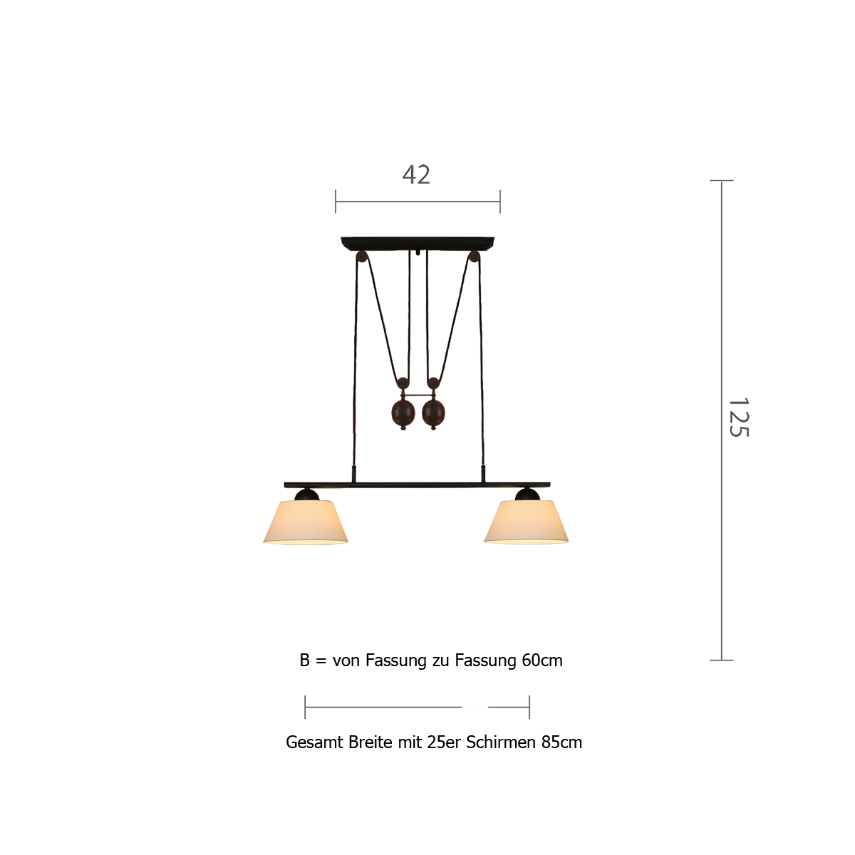 Produktinformationen "Menzel Pusta Zug B= 85cm Schirm Strichlack nach Wahl, Eisen braun-schwarz"