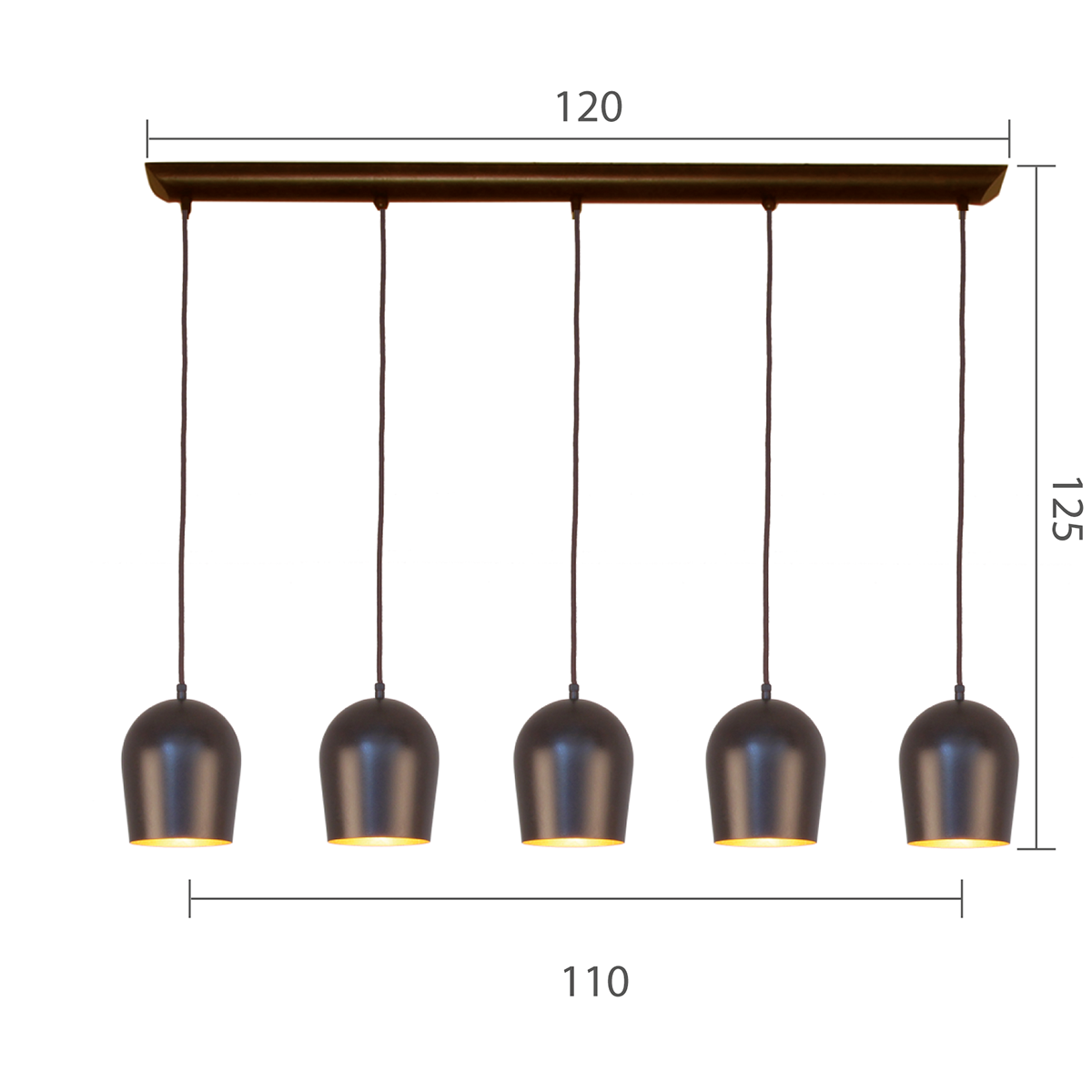 Diese Hängeleuchte besticht durch ihre hochwertige Verarbeitung. Der Baldachin ist in einer edlen braun-schwarz Tönung gehalten, während die Innenseite der Pendel aus Blattgold besteht. Alternativ sind Blattsilber, Blattkupfer oder eine weiße Innenbeschichtung möglich. Jedes Detail wurde sorgfältig ausgewählt, um ein harmonisches Gesamtbild zu schaffen.