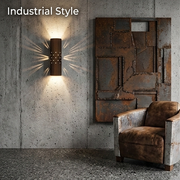 Menzel SOLO Wandleuchte E27 up & down mit schönem Lichtbild durch die Löcher im Mantel braun schwarz für das Landhaus