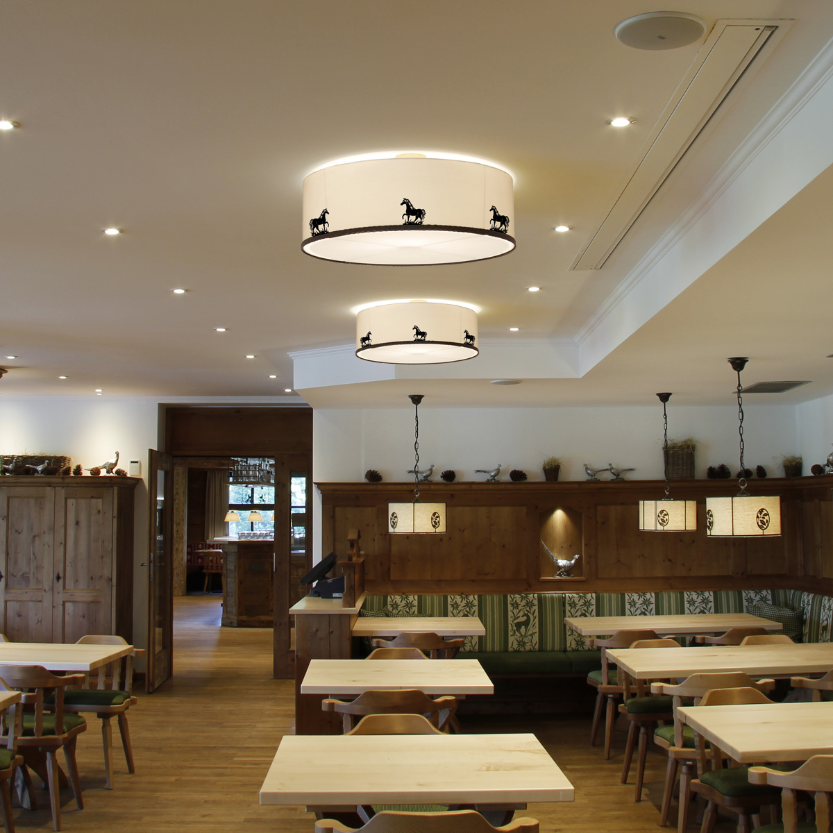 Je nach Raumgröße empfiehlt es sich mehrere Deckenleuchten zu installieren oder zusätzlich mit Hängelampen, Pendellampen, Wandlampen oder Stehlampen und Tischlampen zu arbeiten. Dadurch erzielen Sie stimmungsvolle Atmosphäre und können die Lichtstimmung im Raum an die Situation anpassen. Licht und Schatten erzeugt Atmosphäre!