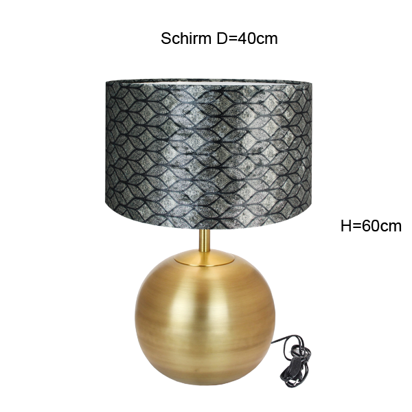 Kaheku Tischlampe Kugel, Fuß Messing Matt, Samt-Schirm schwarz "Retro Blüte"