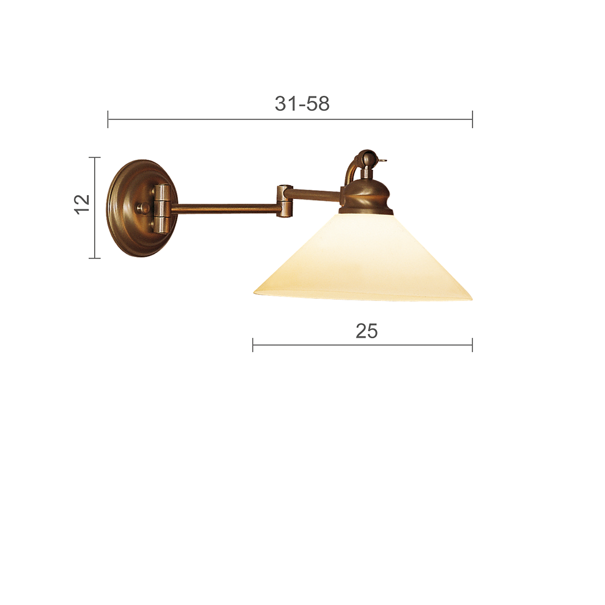 Diese Wandleuchte besticht durch ihre hochwertigen Materialien. Das brünierte Messing und das dreischichtige Opalglas sind nicht nur robust, sondern auch stilvoll. Das klassische Design macht sie zu einem vielseitigen Accessoire, das sowohl in modernen als auch in traditionellen Räumen überzeugt.