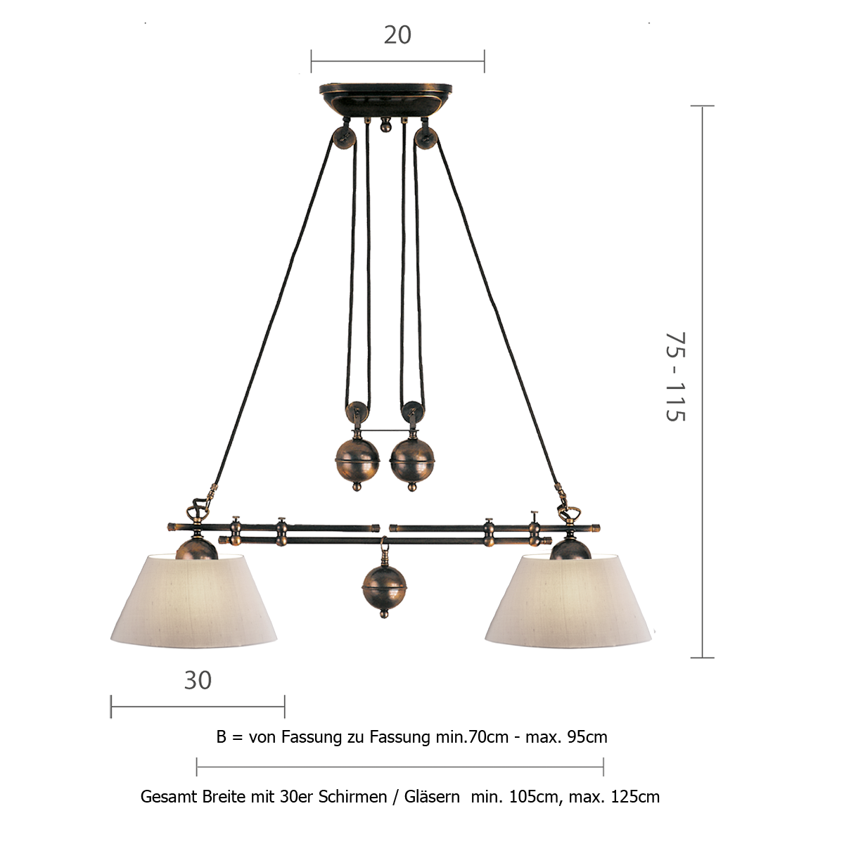Produktinformationen "Menzel Anno 1900 Zugleuchte E27 Seide 30cm, Breitenverstellung in Messing brüniert oder gebürstet"