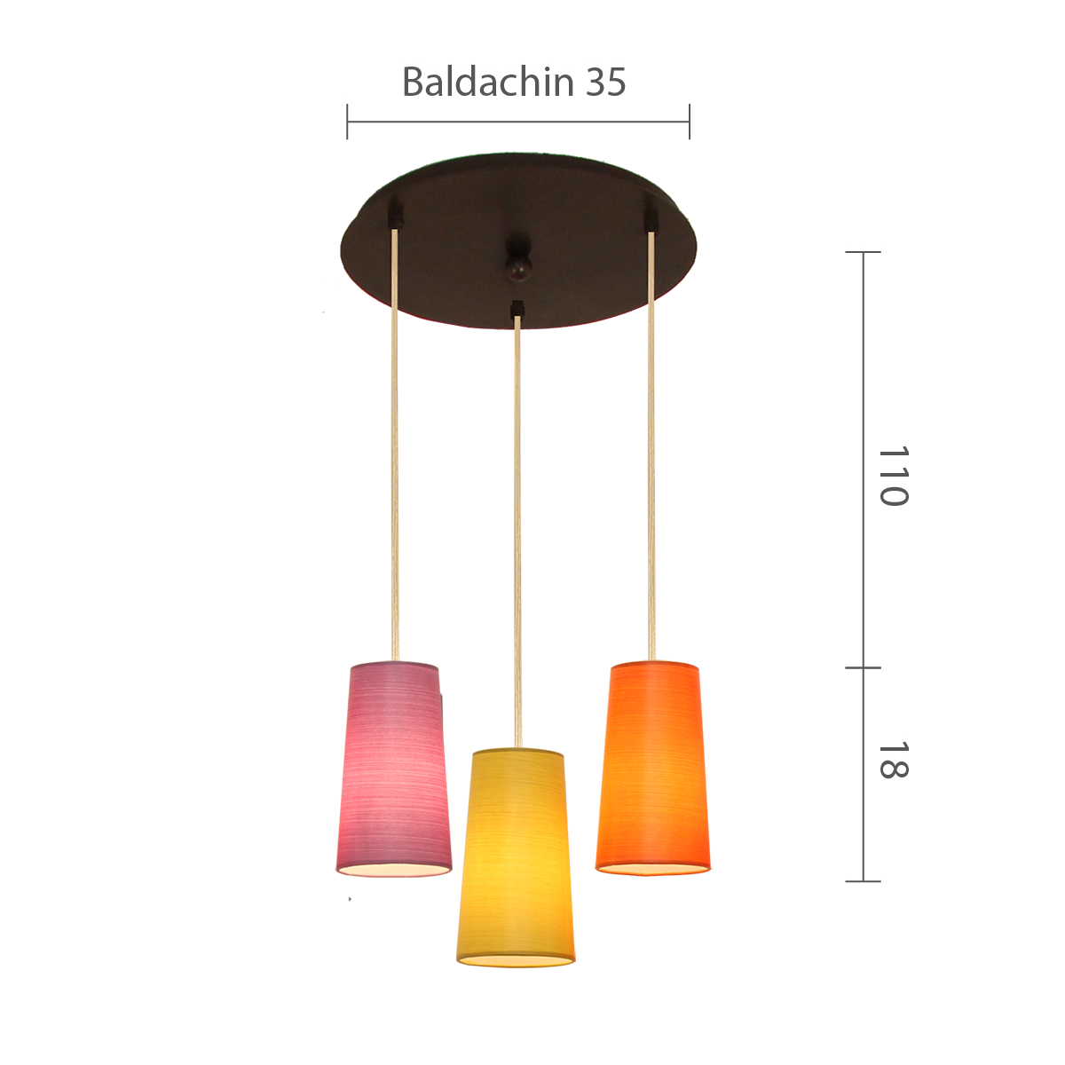 Die Flair 35 Gehänge Hängeleuchte vereint anspruchsvolle Ästhetik und Funktionalität. Mit drei konischen Schirmen in verschiedenen Farben verleiht sie jedem Chalet ein besonderes Flair. Der Baldachin mit einem Durchmesser von 35 cm kann individuell angepasst werden, um eine perfekte Harmonie mit Ihrem Raum zu schaffen.