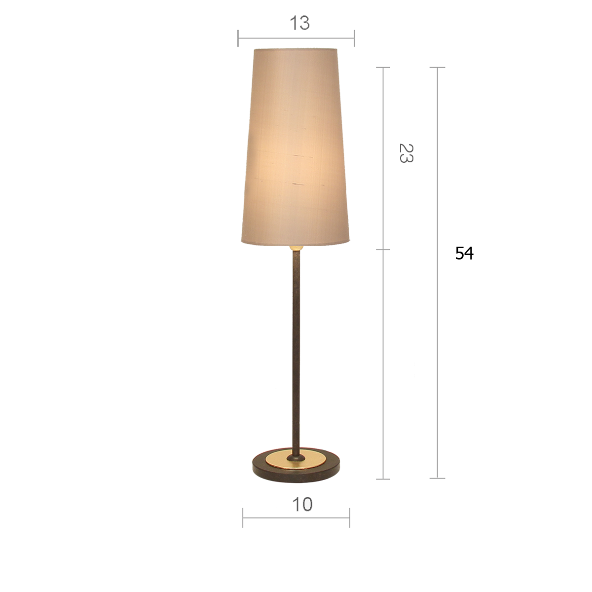 Gefertigt aus hochwertigem Eisen in braun-schwarz Optik, besticht die Tischlampe durch ihre elegante Zierplatte und den feinen Seidenschirm. Die Kombination aus edlen Materialien und präziser Verarbeitung sorgt für ein luxuriöses Ambiente. Der individuell wählbare Schirmdurchmesser von 13 cm fügt sich harmonisch in jedes Raumkonzept ein.