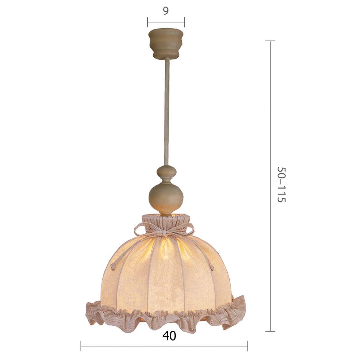 Produktinformationen "Menzel Landhaus Pendelleuchte 40, hell gebeizt mit Stoffschirm Leinen creme uni"