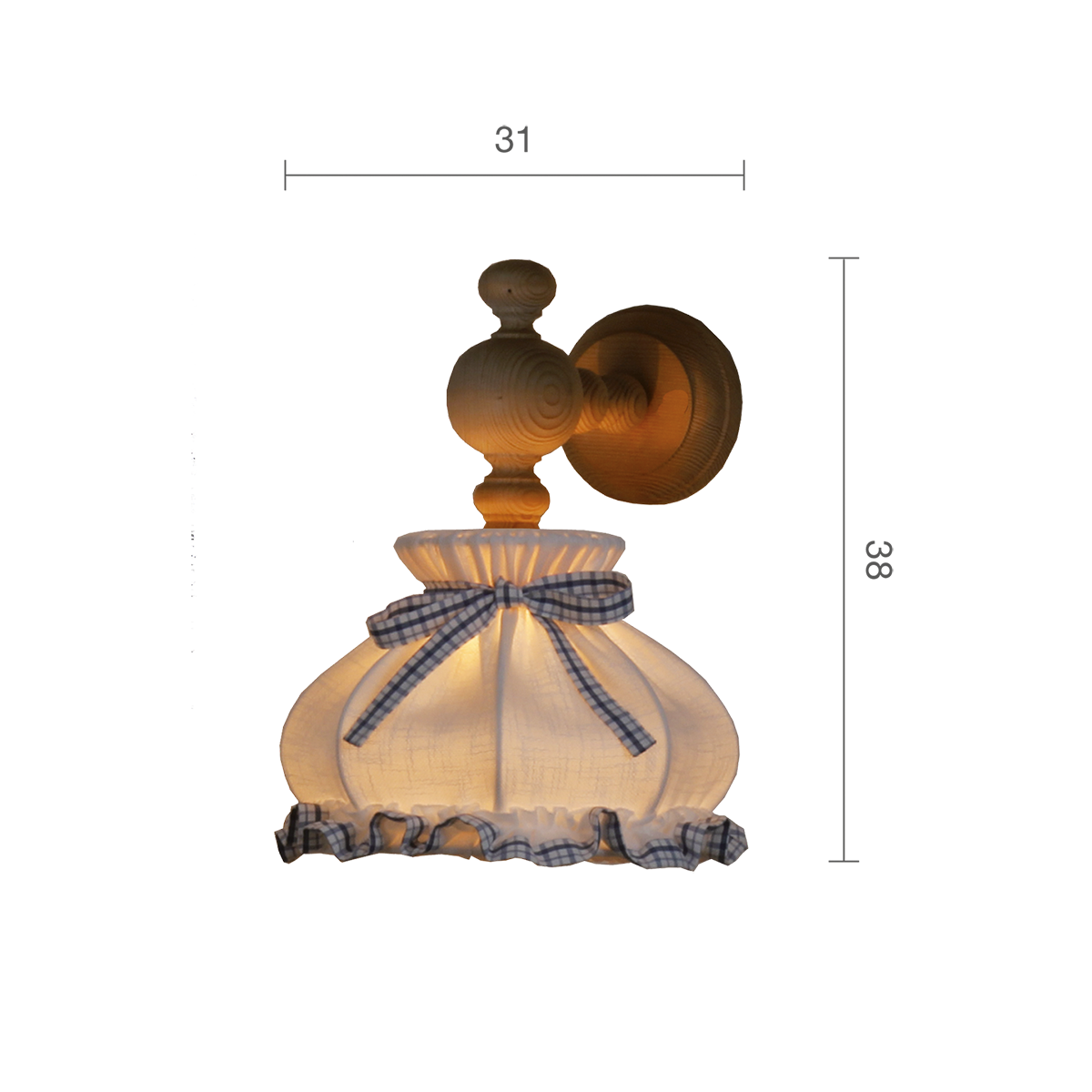 Produktinformationen "Menzel Landhaus Wandleuchte 22, hell gebeizt mit Stoffschirm Leinen weiß, Deko Karo weiß blau"