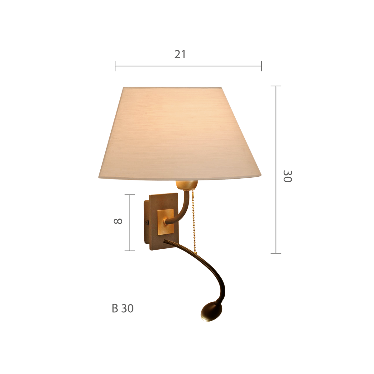 Produktinformationen "Menzel Living Elegant Wandleuchte E27 B=30cm mit LED Lesearm und konischem Strichlack Lampenschirm"