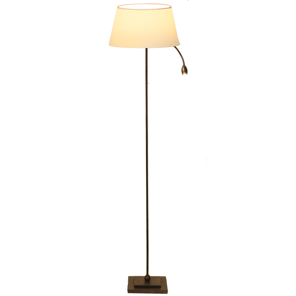 Diese Standleuchte besteht aus hochwertigem Eisen in braun-schwarzer Optik, die jedem Raum eine elegante Note verleiht. Die quadratische Grundplatte sorgt für Stabilität, während der stilvolle Lampenschirm aus Strichlack in der Farbe Ihrer Wahl für ein angenehmes Lichtambiente sorgt. Der flexible LED-Lesearm bietet zusätzliches Licht, ideal zum Lesen oder Arbeiten.