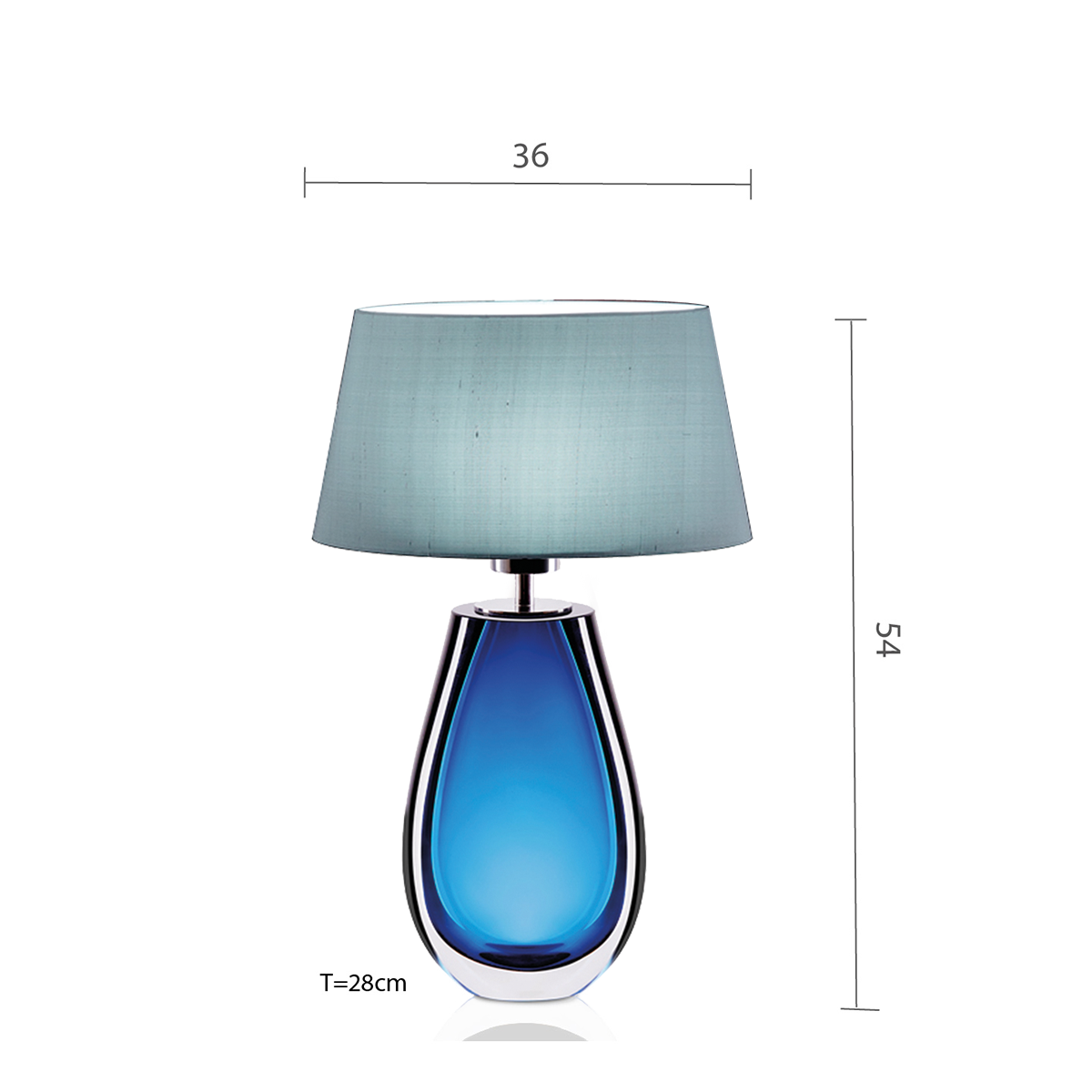 Diese Tischleuchte besticht durch ihr hochwertiges Muranoglas in Azur, kombiniert mit einer robusten Edelstahlmontur. Der ovale, konische Lampenschirm aus Seide unterstreicht das elegante Design. Mit einer Höhe von 54 cm fügt sie sich nahtlos in jede Umgebung ein und bietet einen Hauch von Luxus.