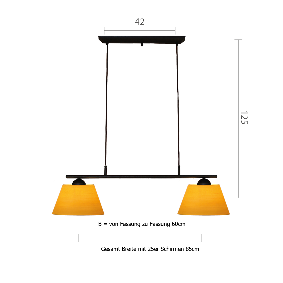 Die Pusta Balkenleuchte vereint elegantes Design mit herausragender Funktionalität. Mit einer Länge von 85 cm ist sie perfekt für längliche Tische geeignet. Der getupfte braun-schwarze Eisenbalken und der Strichlackschirm in Ihrer Wunschfarbe machen sie zu einem stilvollen Hingucker.