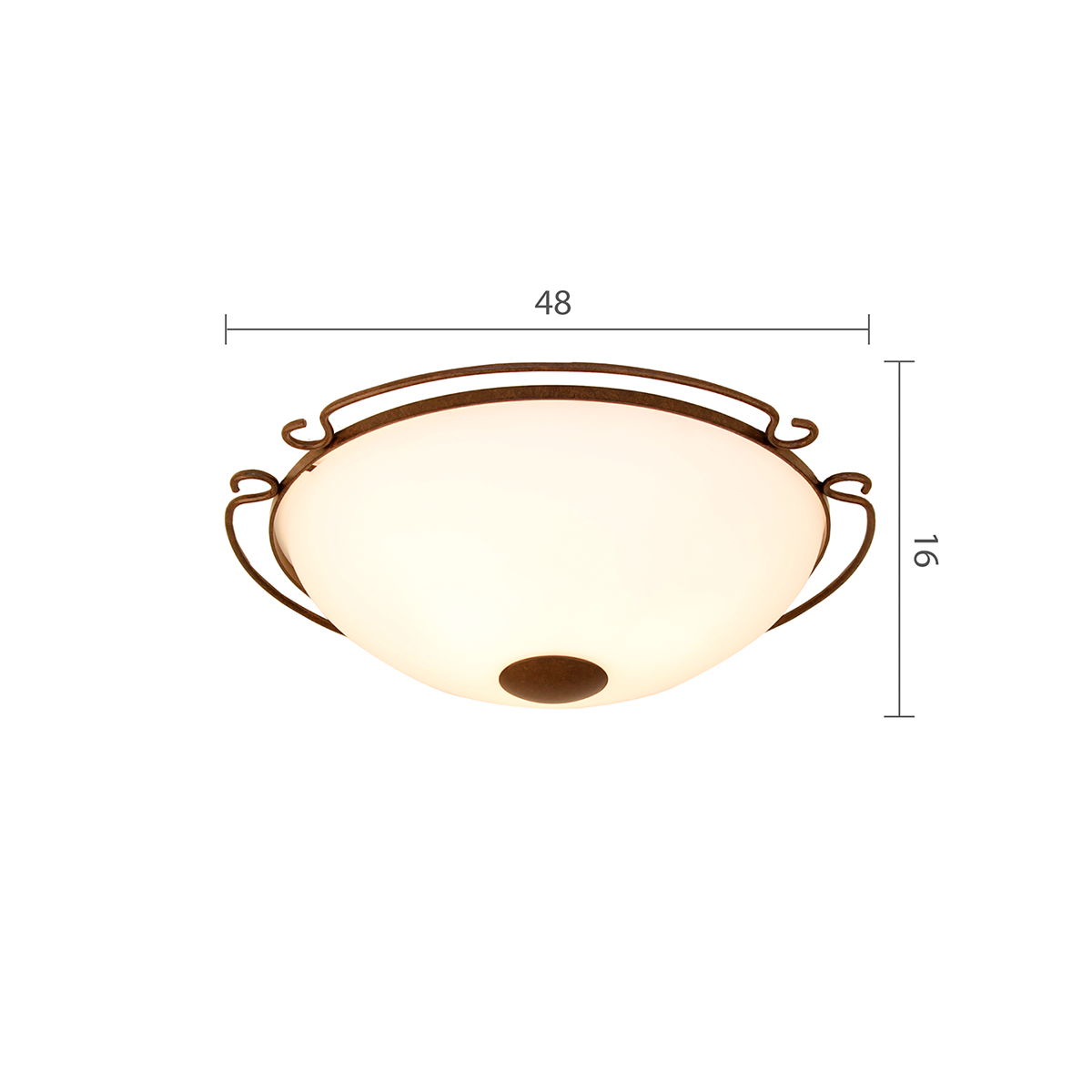 Die Pusta Deckenleuchte verbindet rustikalen Charme mit modernen Akzenten. Der elegante Zierrahmen und das hochwertige Opalglas machen sie zu einem echten Blickfang in jedem Landhaus. Mit ihrem großzügigen Durchmesser von 48 cm und einer Höhe von 16 cm bietet sie eine ideale Beleuchtungslösung für anspruchsvolle Innenräume.