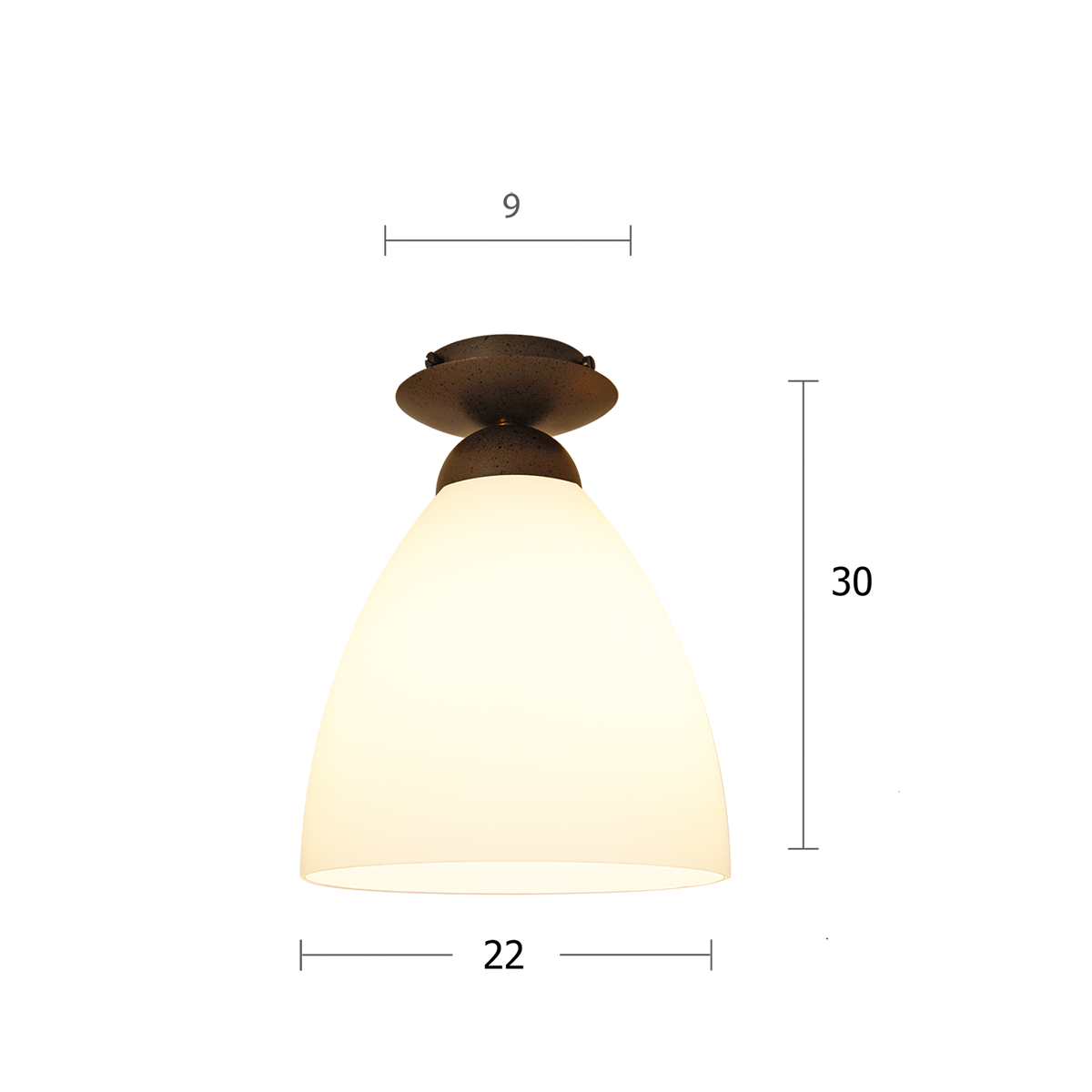 Diese Deckenleuchte zeichnet sich durch ihre exzellente Materialwahl aus. Die Halterung besteht aus robustem Eisen in einem eleganten Braun-Schwarz-Ton, während das Opalglas in Tulpenform ein sanftes Licht verbreitet. Diese Kombination verleiht Ihrem Raum eine luxuriöse und zugleich dezente Atmosphäre.