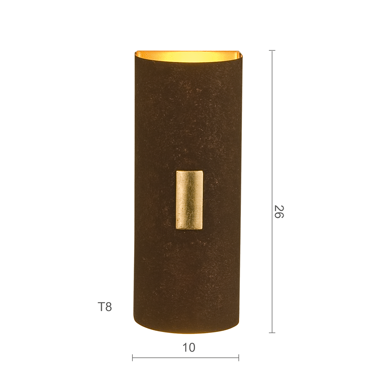 Die Solo Blende Wandleuchte ist aus hochwertigem Metall gefertigt, das in einer stilvollen braun-schwarzen Farbgebung erstrahlt. Die Kombination mit der Blattgold-Applikation verleiht dieser Lampe einen einzigartigen Charakter, der sowohl zu klassischen als auch modernen Einrichtungsstilen passt. Die raffinierte Verarbeitung garantiert eine lange Lebensdauer und zeitlose Schönheit.