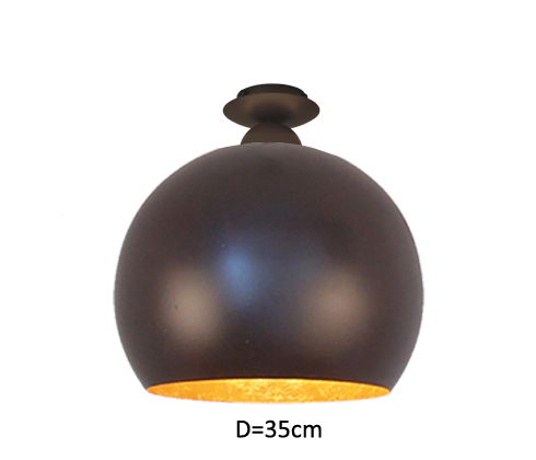 Menzel SOLO Deckenleuchte Kugel D=35cm, 1 x E27 Eisen braun-schwarz, innen Blattgold