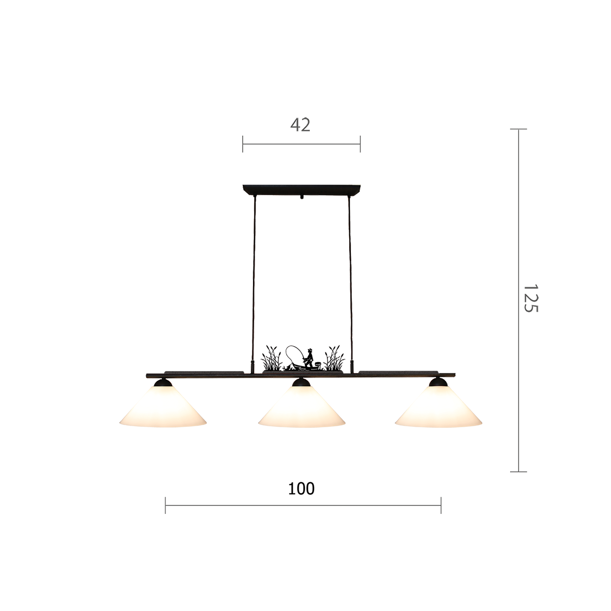Die Hängeleuchte besteht aus hochwertigem Eisen in braun-schwarz getupfter Optik. Dank der E27-Fassung ist sie kompatibel mit energieeffizienten Leuchtmitteln bestückbar, was sie umweltfreundlich und anpassbar macht. Das Textilkabel in Braun ist kürzbar, sodass jede Abhänglänge möglich ist. Die konischen Opal-Dreischicht-Gläser sorgen für eine optimale Lichtverteilung.