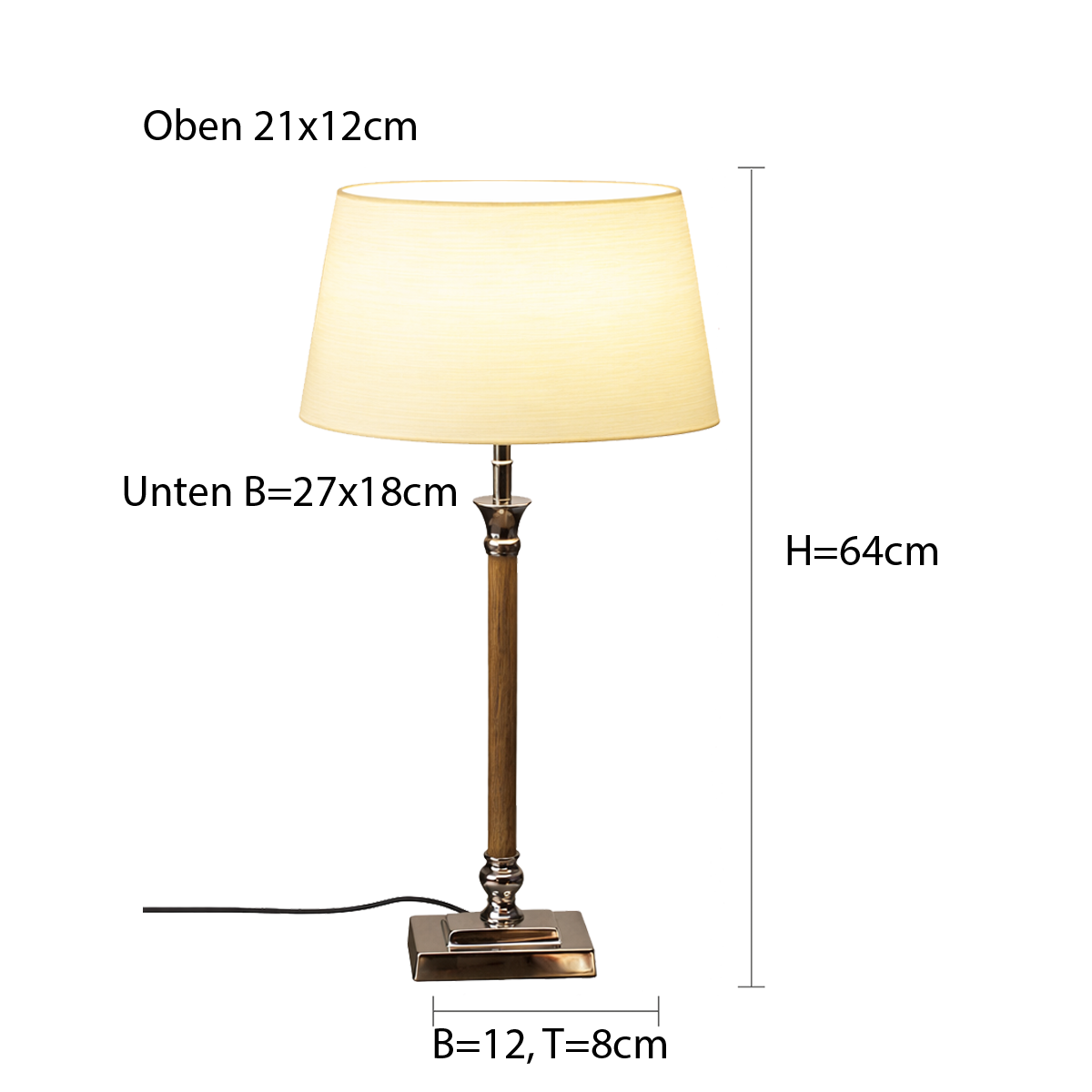 Produktinformationen "Menzel Tischleuchte Aurelia 48, Sockel, brüniert od. Chrom / Holz Stab, H=48cm, Schirm O V A L Strichlack"