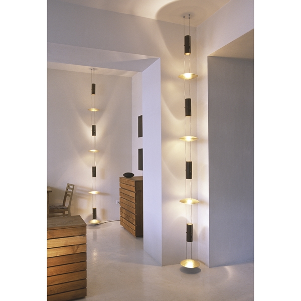 Produktinformationen "Oligo Lichtkunstobjekt "Bel-Air", Metall, Deckenabhängung, Höhe kürzbar, Reflektionsdisken in Blattgoldoptik, pro Lichtrohr 2x 460 Lumen, 9.6 Watt, St"