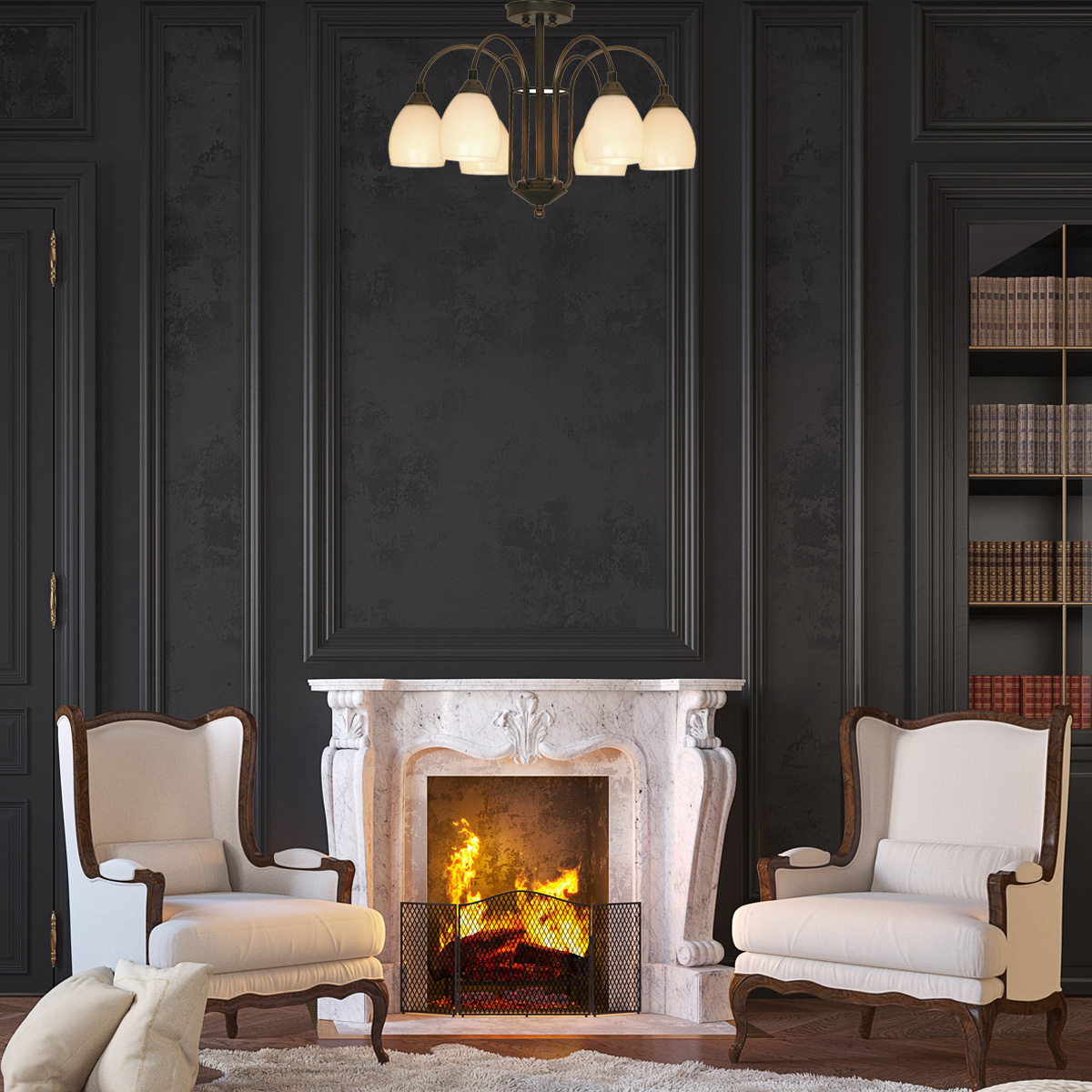Menzel Deckenleuchte D=50cm, Familie Anno 1900, Messing brüniert, Gläser Opal weiß D=8cm